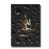 SubhanAllah, Alhamdulilah, and AllahuAkhbar. These three phrases remind us daily of the Glory and Greatness of Allah. Encompassed beautifully in this gold colour calligraphy against a black backdrop, it's modern art meets ancient Arabic calligraphy, a fusion of both worlds. Perfect addition to the modern day living space.