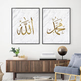 Allah and Muhammad Arabic Calligraphy Minimalist Marble Background Islamic Canvas Art