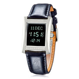 Beautiful Rectangle Design Prayer Watch with Azan Time Qibla Compass Water Resistant Genuine Leather