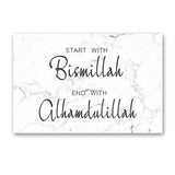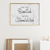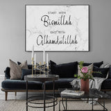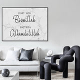 Bismillah Alhamdulillah Islamic Canvas Art White Marble Background