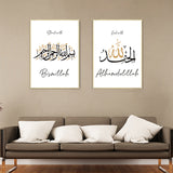 Inshallah, Bismillah and Alhamdulillah are phrases that we utter often as we go about our daily routine. It reminds us that in everything we do, Allah is always present and plays the most important role in our lives. These beautiful pieces of Islamic Canvas Art in Black and Gold calligraphy serves as a lovely reminder of that. It's beautiful and simple design makes it a lovely addition to any living space, be it the kitchen, living room, office or the bedroom.