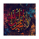This is a modernistic take on Arabic Calligraphy utilising vibrant colours that really makes it the centre of attention in any living space. It's a fusion of both the ancient art of Arabic Calligraphy and modern art culture. This is one of the more popular pieces amongst young Muslims who embraces their love of Islam. This particular piece comes in a perfect square design